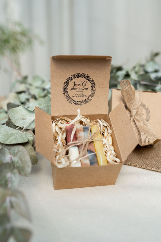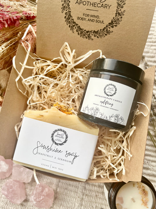 Shop our collection of beautifully curated gift boxes, each filled with our all-natural aromatherapy products. The boxes listed below come with our standard gift wrap option, making them ready to gift straight away.